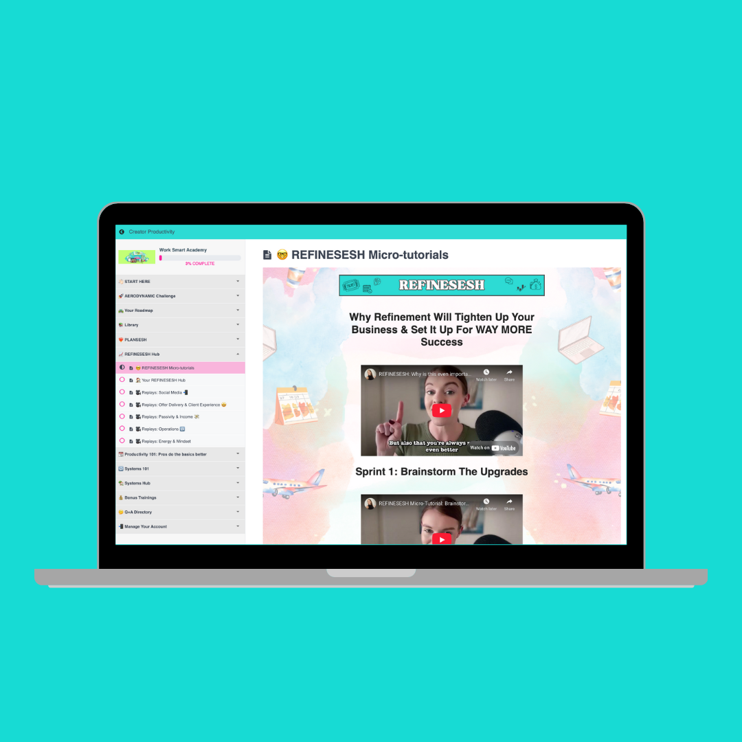Also every other week we have live biz refinement calls where go deep into the nitty gritty of your biz — from marketing and offers to ops, onboarding, and client experience.