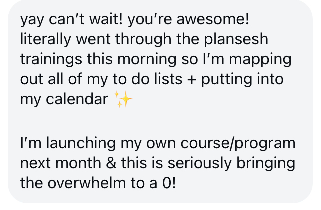 “this is seriously bringing the overwhelm to a 0!” even coming up to a big launch