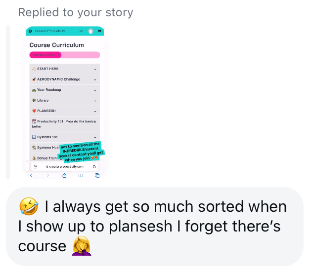 She gets SO much from our planning calls that she forgot she gets access to a WHOLE 👏🏻 DAMN 👏🏻 PORTAL 👏🏻 of productivity + systems trainings ⬇️