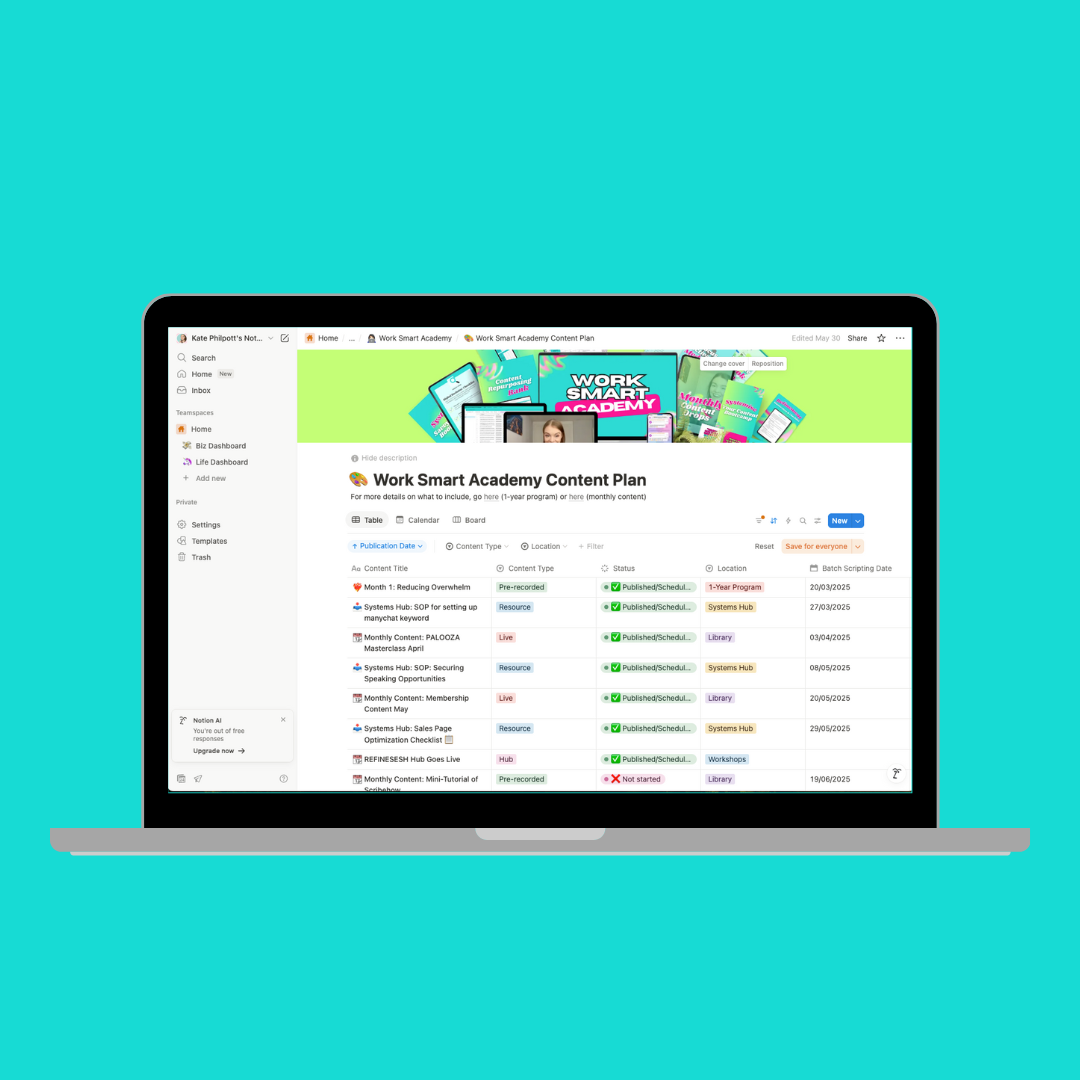 ✅ Streamline the heck outta your content, launches + biz processes